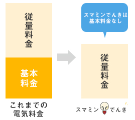 スマミンでんきは、うれしい基本料金0円。使用した電力量に応じてお支払いいただく、納得のプランです。ファミリー世帯をはじめ、店舗や事務所など、契約アンペア数が高く、電力使用量の多いお客さまほど、お得にご利用いただけます。(ご提供エリア:北海道、東北、関東、中部、北陸、関西、中国、四国、九州、沖縄)※離島を除く